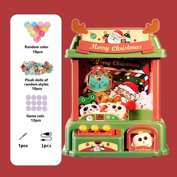 🧸 Complete Holiday Set: Includes 1 claw machine, 10 plush dolls, 10 gachas, 12 game coins, and a USB cable—ready for festive fun!